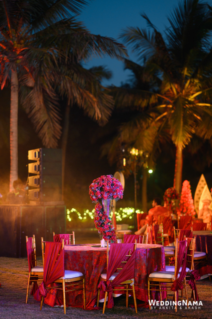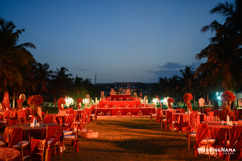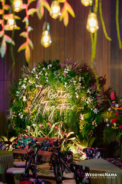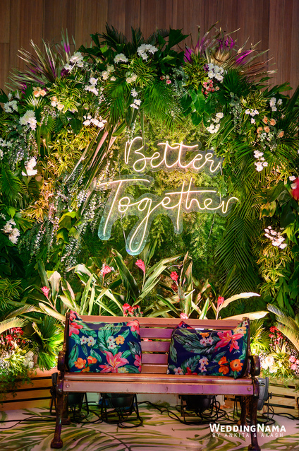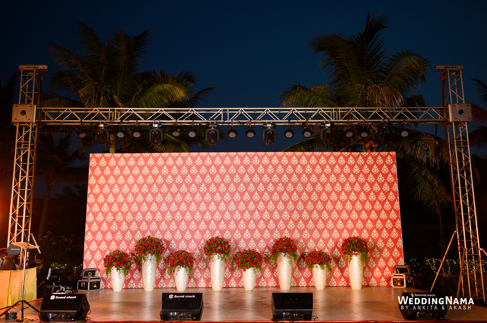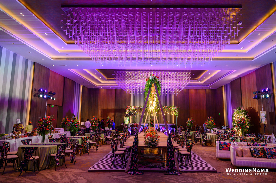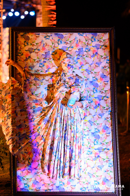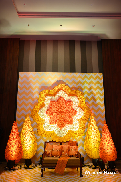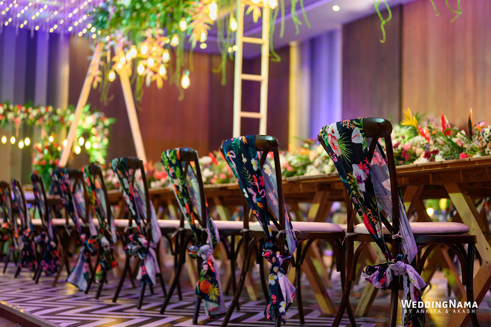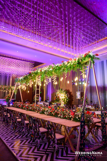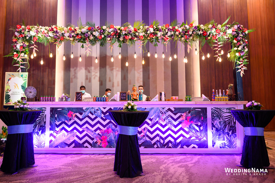 Sangeeth: This festivity was planned with a beautiful tunnel of lights matched with reflective flooring and the cosmic blanket of lights. Grand couple entry and paparazzi gimmick at the entrance gave each one a starry vibe.