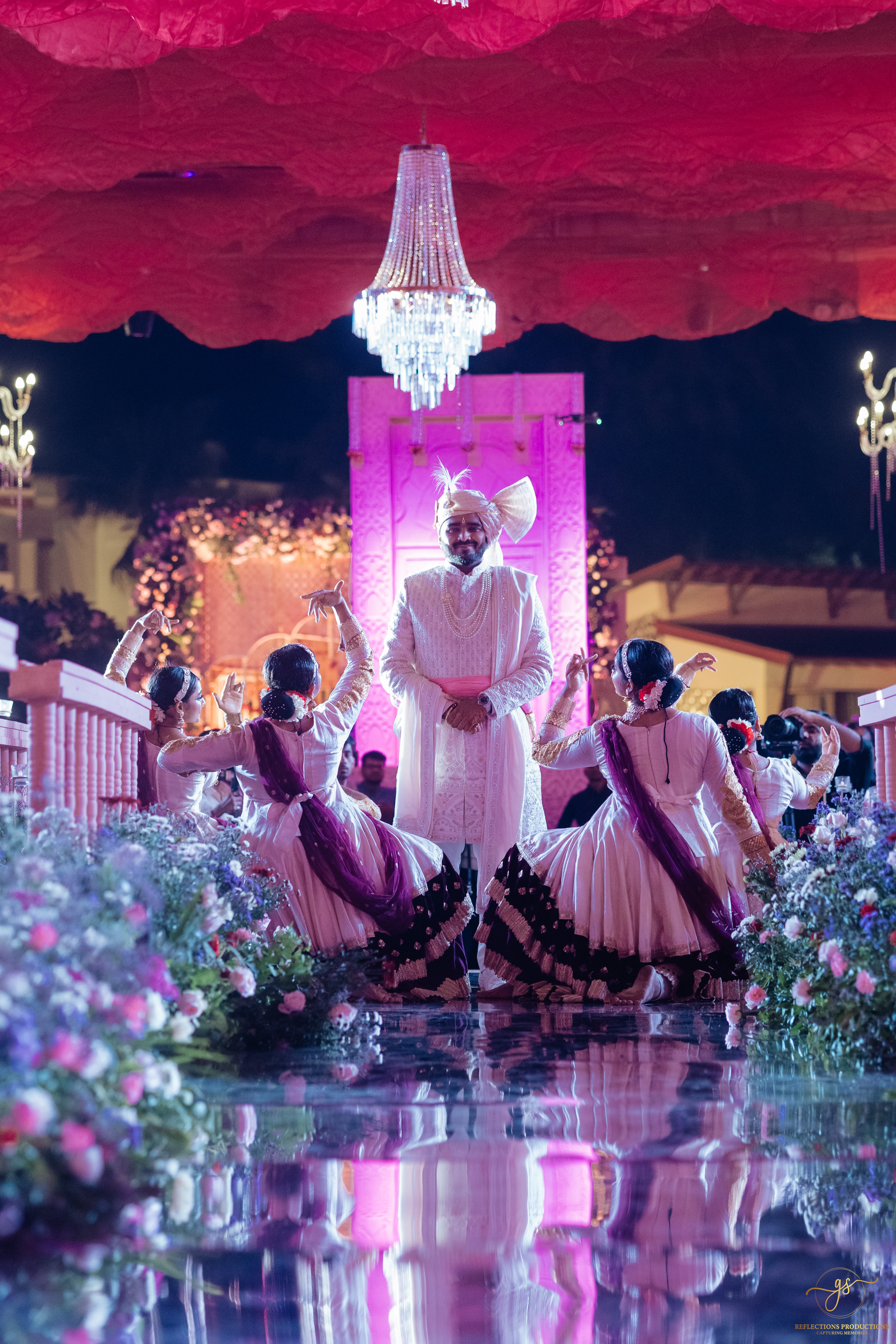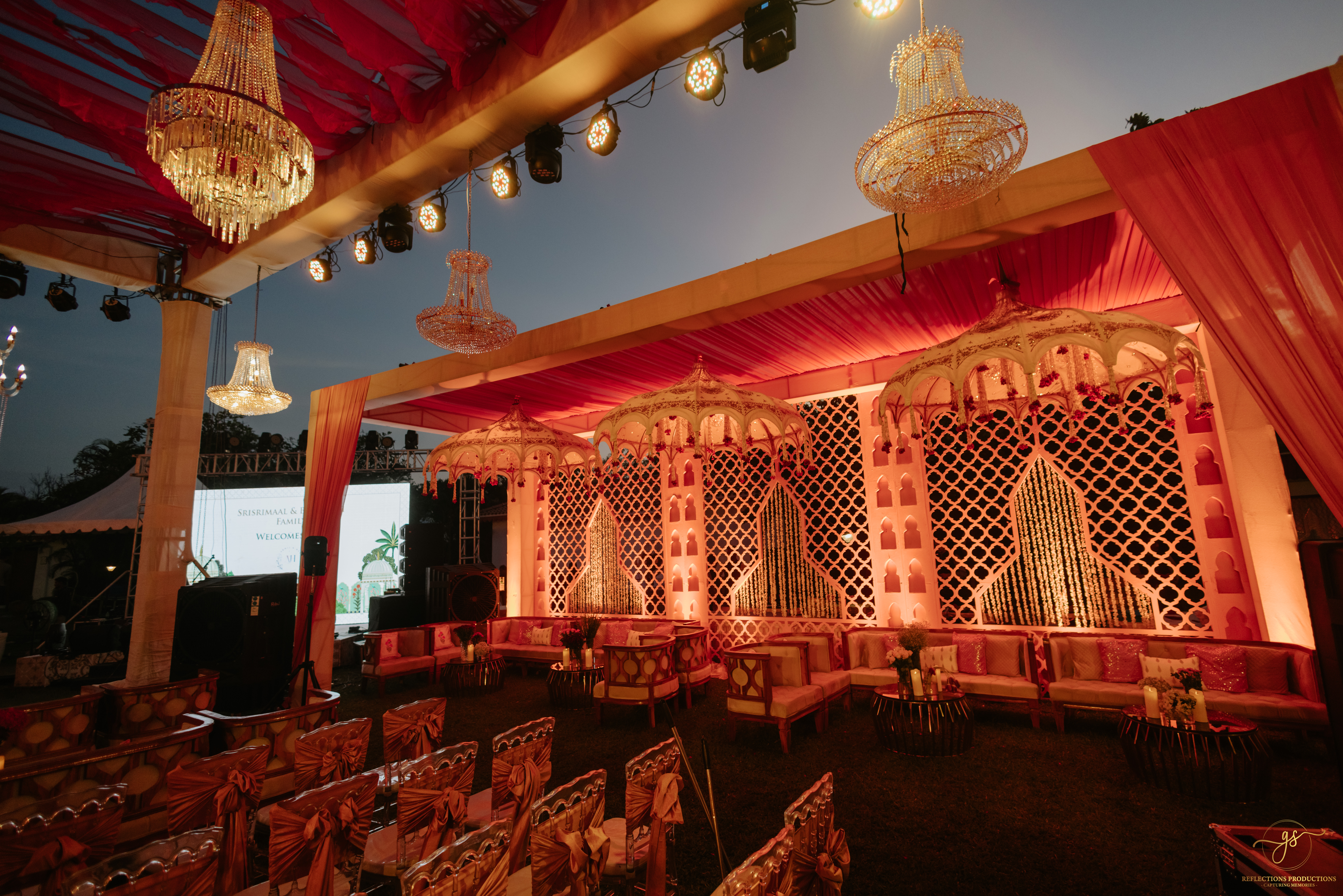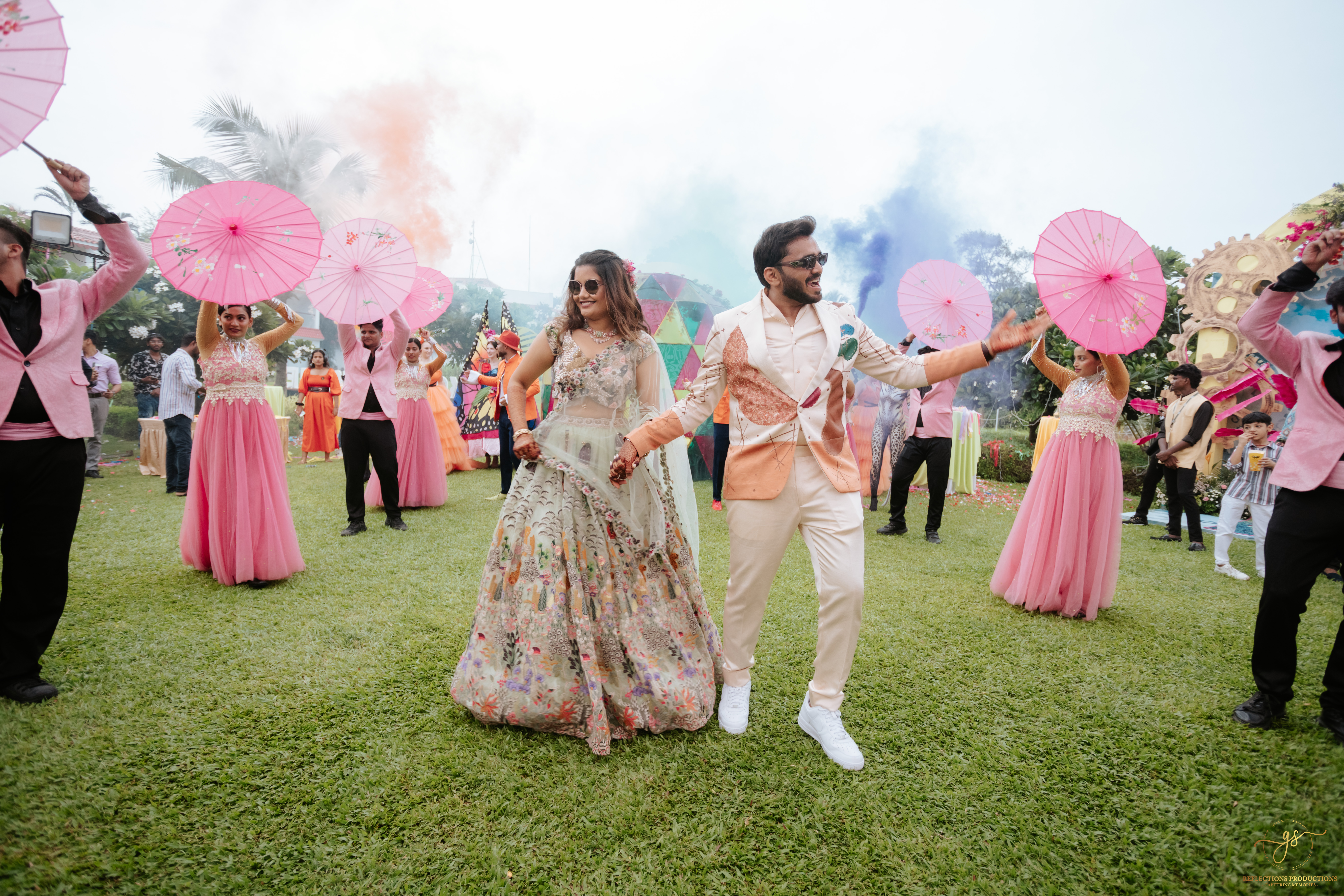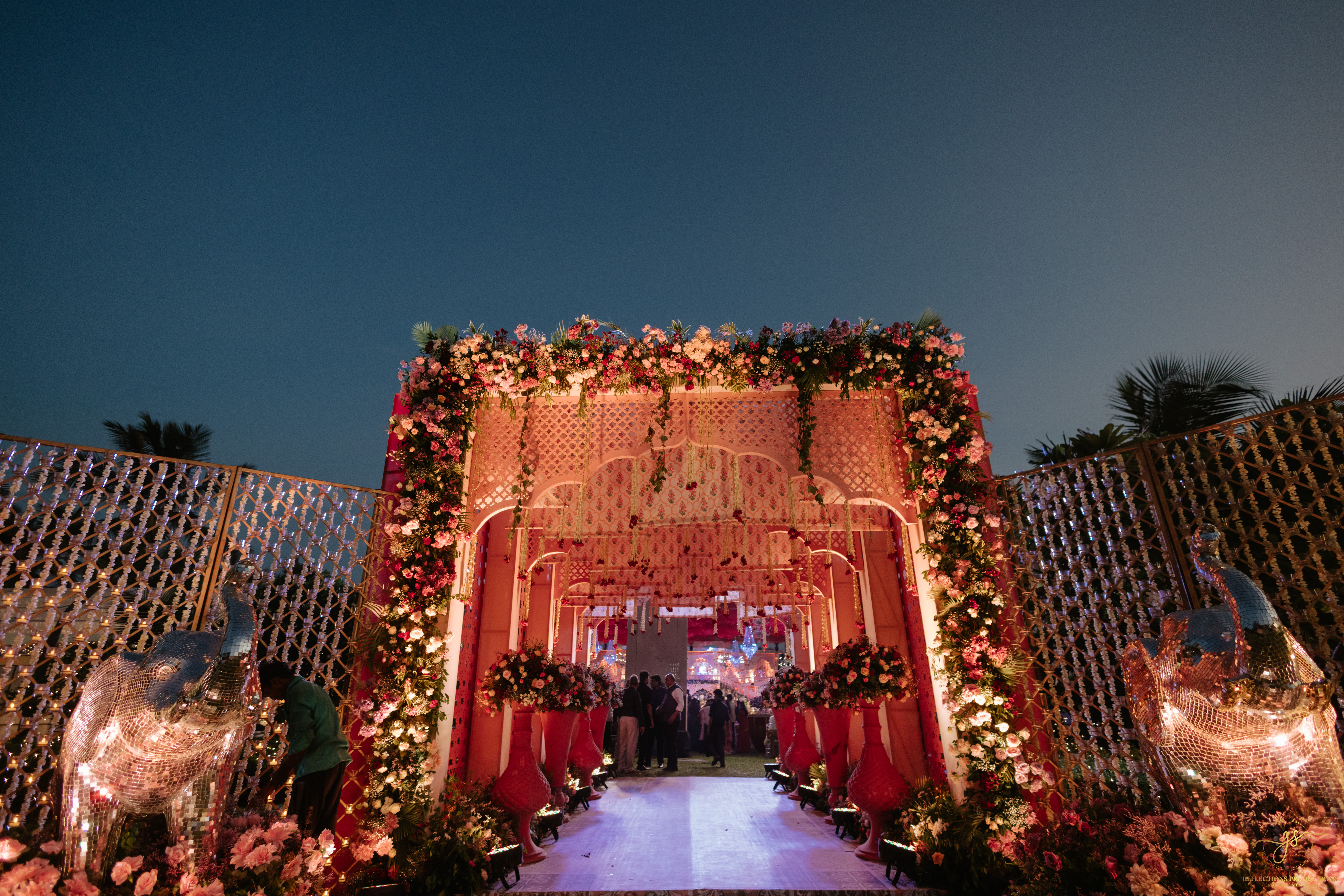Our events included a South Indian-themed check-in lunch, a Tomorrowland carnival high tea, an awards night and sangeet in the evening, and a white pool party the following morning. The celebrations continued with the Baraat, Varmala, Reception, and Phera ceremonies.