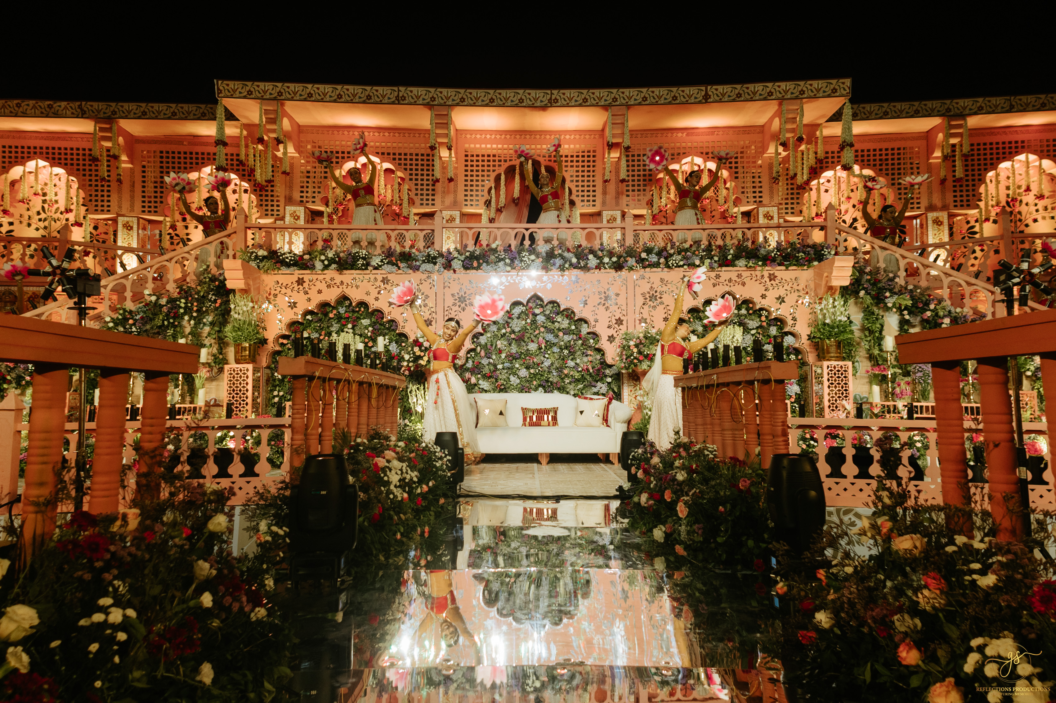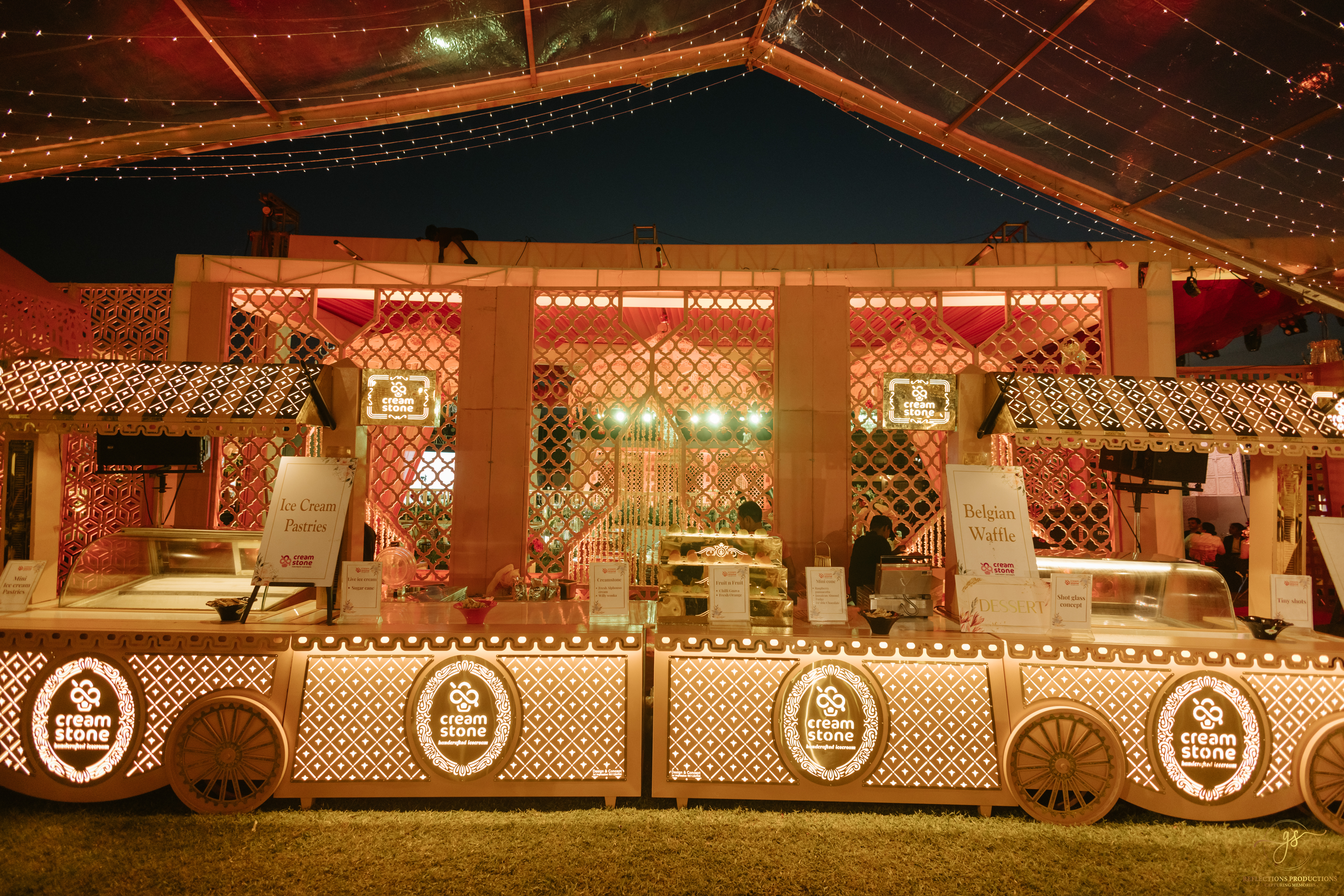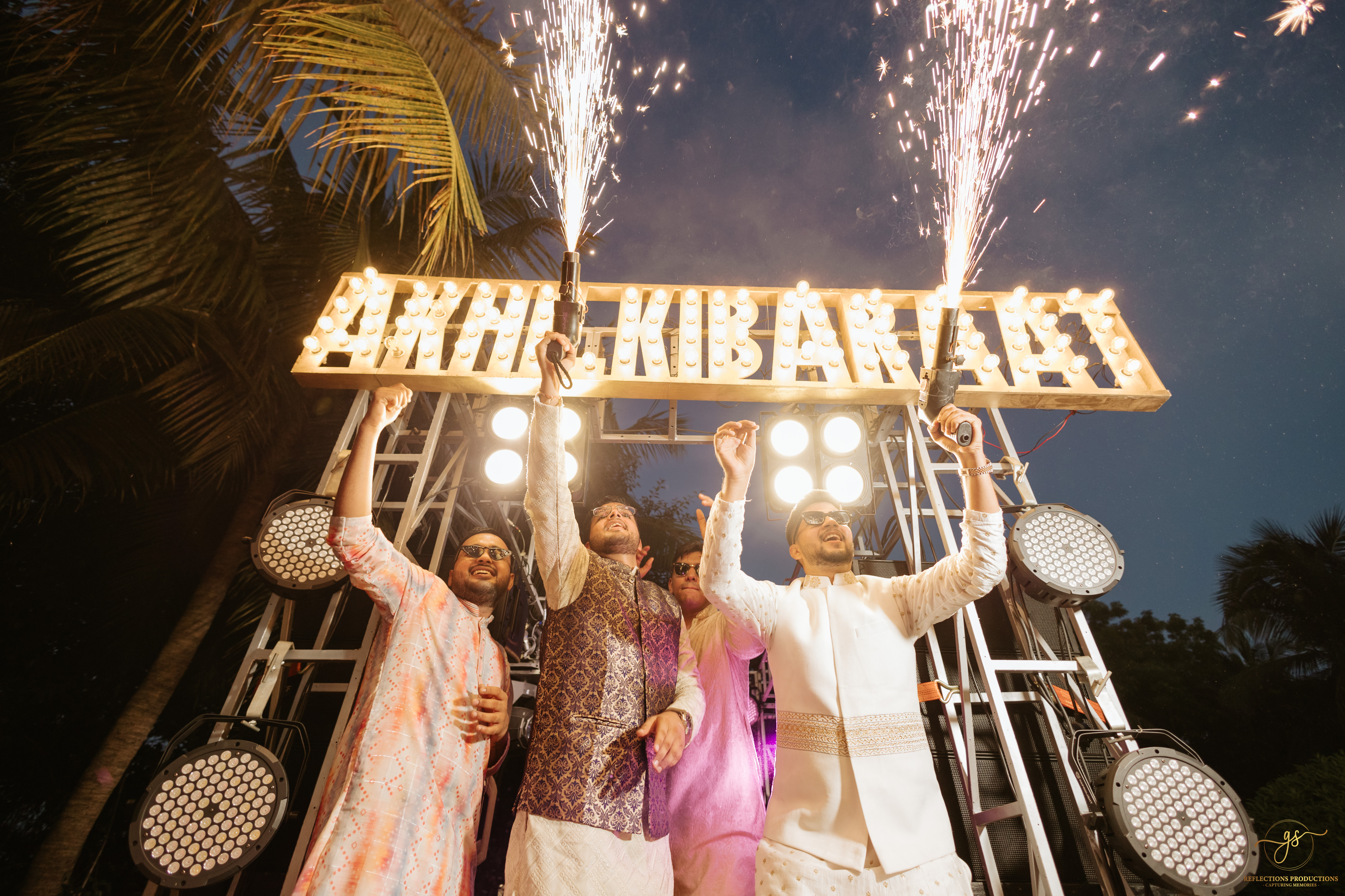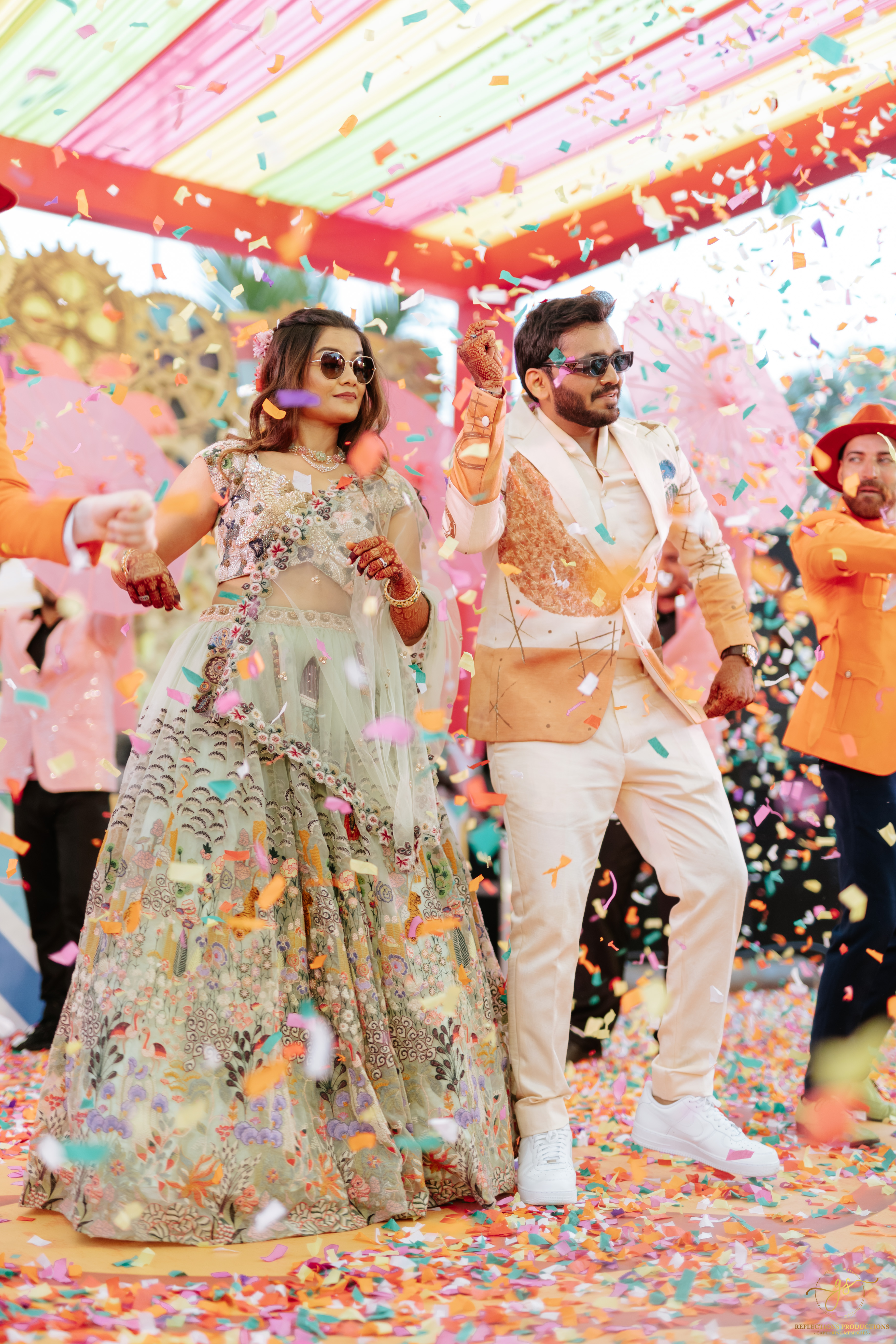 Our events included a South Indian-themed check-in lunch, a Tomorrowland carnival high tea, an awards night and sangeet in the evening, and a white pool party the following morning. The celebrations continued with the Baraat, Varmala, Reception, and Phera ceremonies.