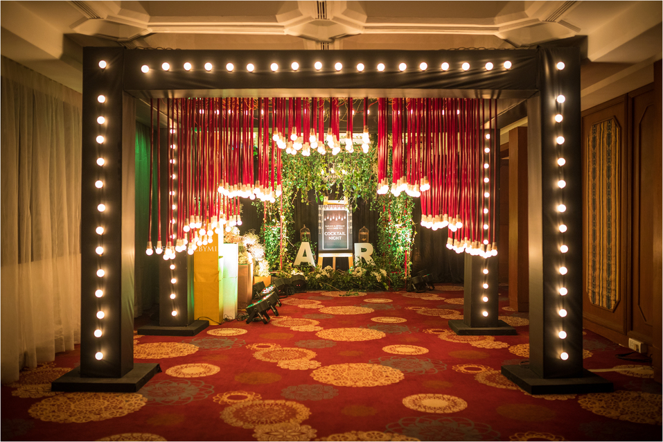 Adding glamour to the wedding was the couple’s sangeet. The sangeet was an extravagant affair. The groom stole the show with a surprise Bollywood flash mob for the bride. We had pulled off the décor at the set budgets.